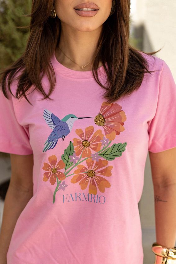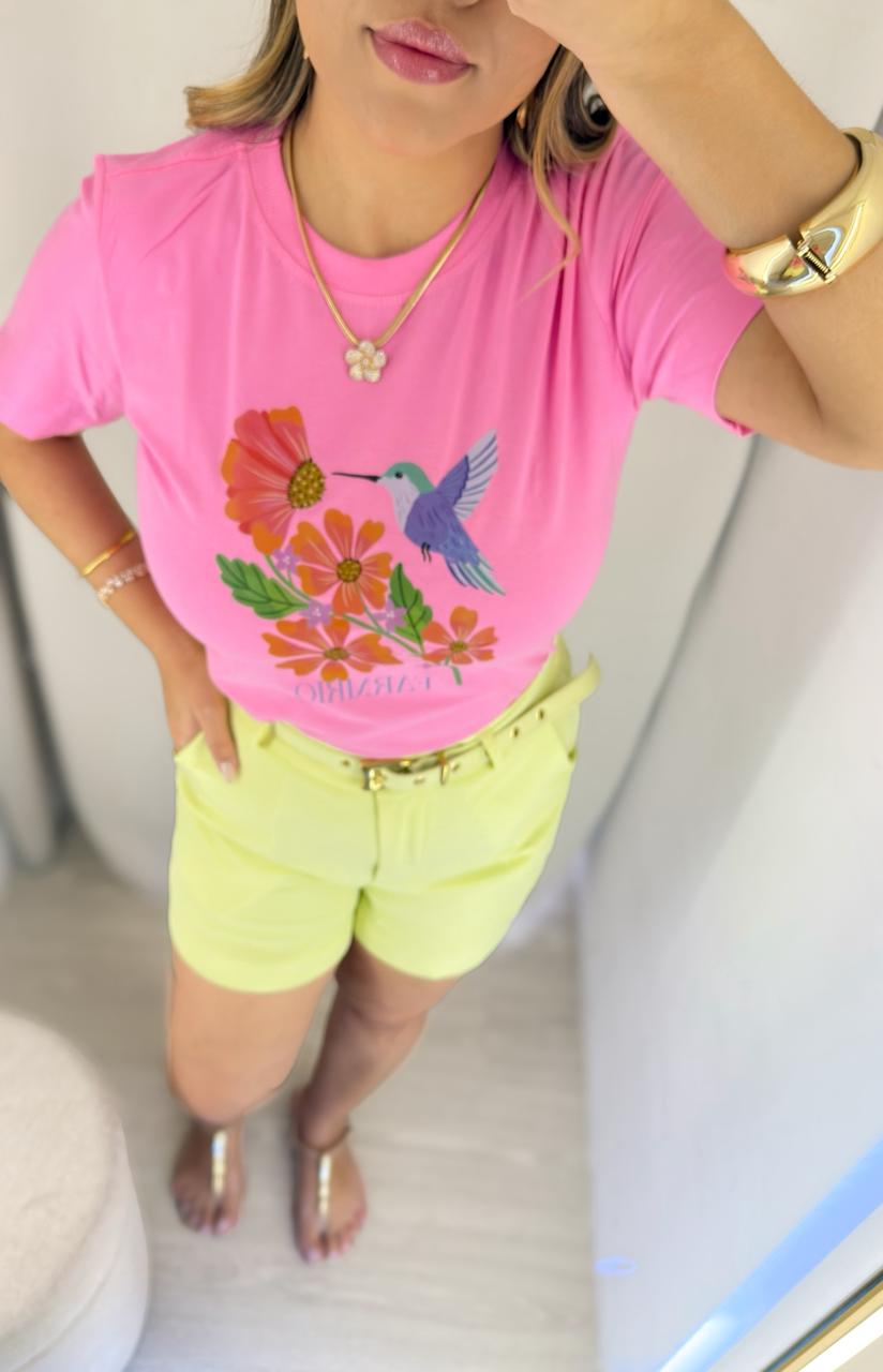 T-SHIRT BEIJA FLOR ROSA