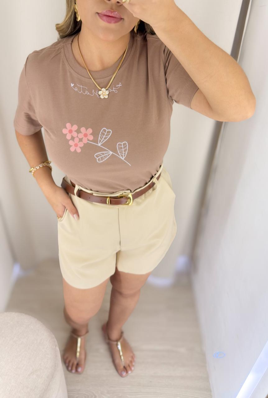 T-SHIRT FLOWER BEGE